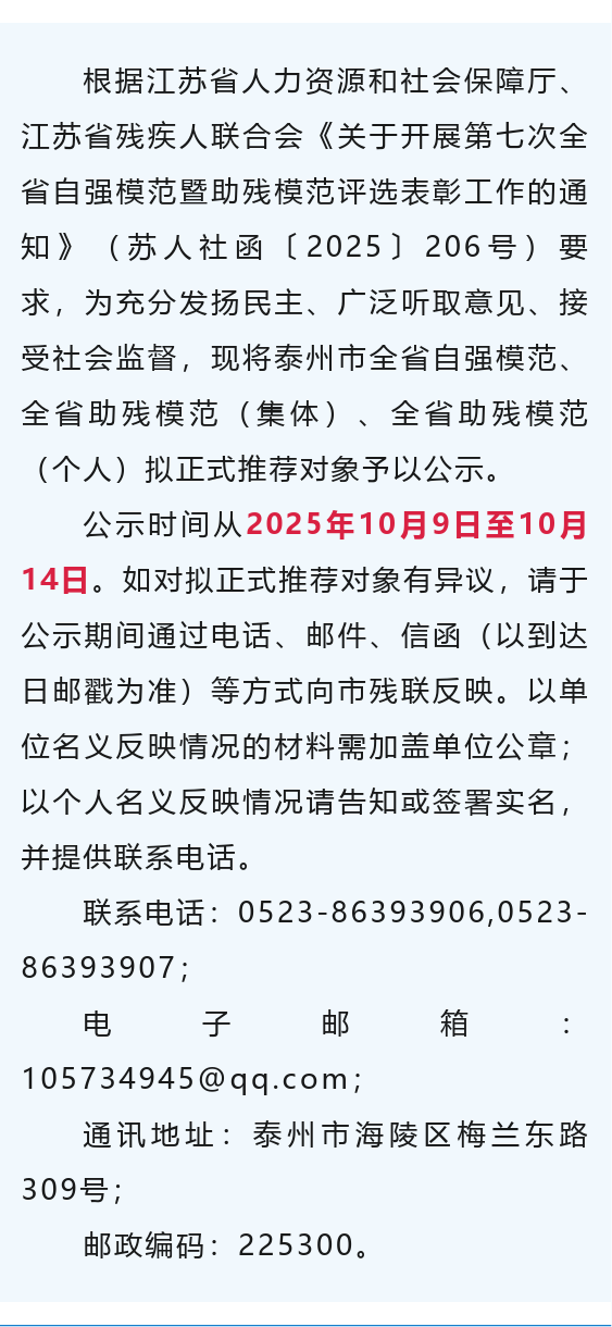 泰州市殘疾人聯(lián)合會發(fā)布公示