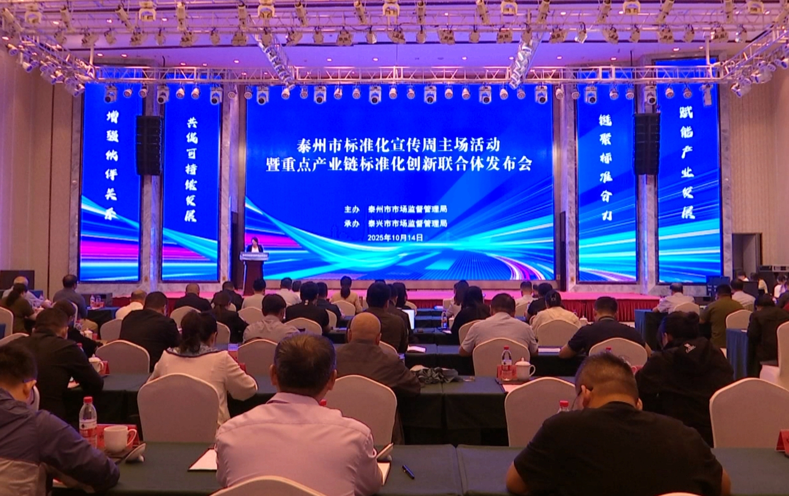 10月14日,泰州市標準化宣傳周主場活動暨重點產業鏈標準化創新聯合體發布會在我市舉辦。本次活動以“鏈聚標準化創新合力,賦能產業高質量發展”為主題,泰州市市場監管局黨組書記、局長張漢剛,泰興市委常委、常務副市長毛戴軍出席活動。 毛戴軍在致辭中表示,舉辦本次標準化宣傳周活動,核心目標是推動以標準化創新為引領,聯合構建以重點企業、高校院所、科研單位為主體、協同發展的創新聯合體,為區域高質量發展注入更強勁的標準力量。他同時向廣大企業家與專家發出倡議,希望大家進一步關注泰興、支持泰興、選擇泰興,助力泰興實現標準化創新與產業鏈的深度融合。 活動現場發布了2025年度專利標準融合創新項目,展示了生物醫藥等重點產業鏈標準化建設成果,并舉行了重點產業鏈標準化創新聯合體簽約共建儀式。此外,活動還安排了重點產業鏈標準化發展趨勢進行專業解讀,為后續產業標準化建設提供指明了方向。 |