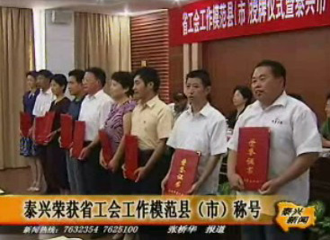 • 2007-07-27 09:12:00泰興榮獲省工會工作模范縣(市)稱號