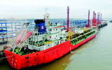 • 巨輪穿梭往復(fù)、裝卸服務(wù)不打烊,走進(jìn)金燕倉儲(chǔ)液體化工碼頭,處處是熱火朝天的奮進(jìn)景象。嘟——一聲悠長的汽笛聲響起,化學(xué)品船中拓16緩緩駛?cè)敫劭凇T缫咽睾蛟诖说牟僮鲉T打開閥門,由金江化學(xué)公司生產(chǎn)的1500噸丙烯酸丁酯經(jīng)管道緩緩輸送到船艙,以水運(yùn)方式[詳細(xì)]