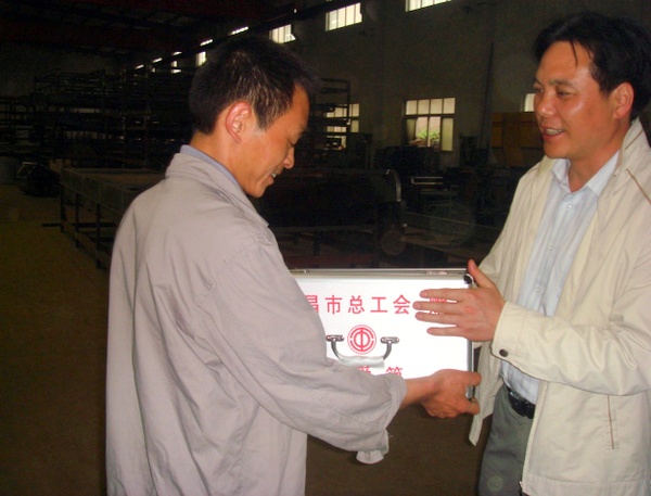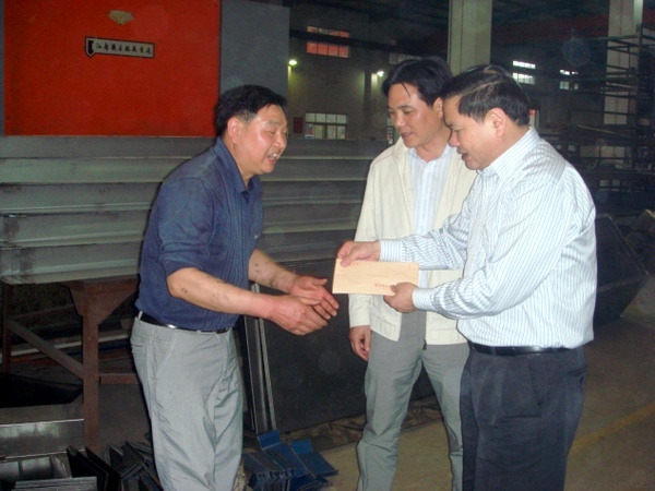 4月23日下午,宜昌市委常委、市總工會主席劉學甫在宜都市委副書記、市長羅聯(lián)峰,市委常委、市委宣傳部長、市總工會主席王世斌的陪同下,到宜昌市新豐機電設備制造有限公司生產(chǎn)一線慰問困難職工陳鳳友,與他親切交談,詳細詢問了陳鳳友的身體情況、工作情況及家庭情況,送去慰問金500元。并代表湖北省總工會、宜昌市總工會到生產(chǎn)一線為職工贈送“關愛箱”。
